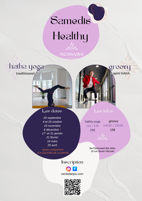 Tarif : 25€ hatha Yoga / 15€ atelier Groovy.