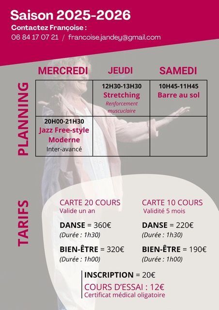 Pour Françoise JANDEY la danse est un ART, mais le travail du corps est thérapeutique. C'est une recherche sur soi, une prise de conscience. La danse peut être vécue sans artifice.